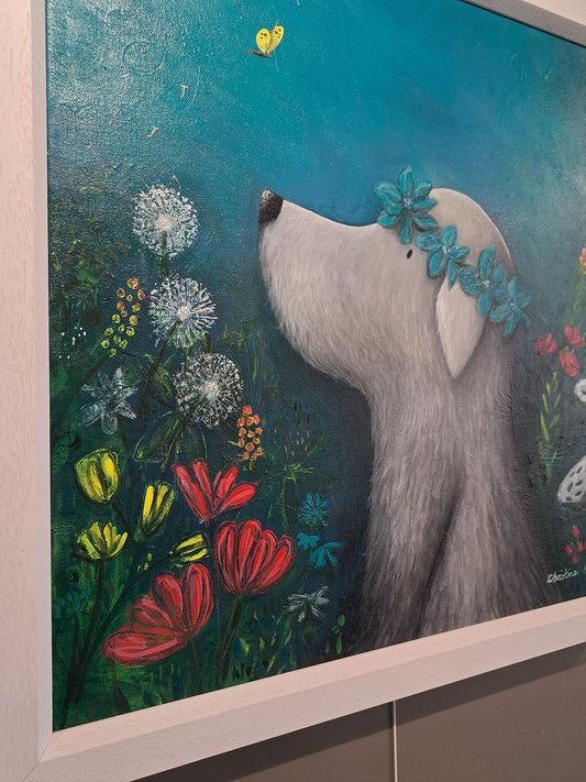 Christine Hughes - Summer Days, Floral dog portrait