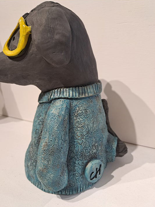 Christine Hughes - Sculptures - Yellow Glasses, Dog with jumper