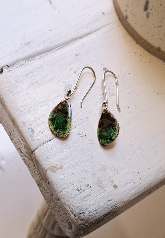 Carole Ramsden Silver - CR143 - Asymmetric enamelled copper drop earrings
