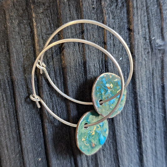 Carole Ramsden Silver - CR156 - Silver hoop and copper circle enamel earrings