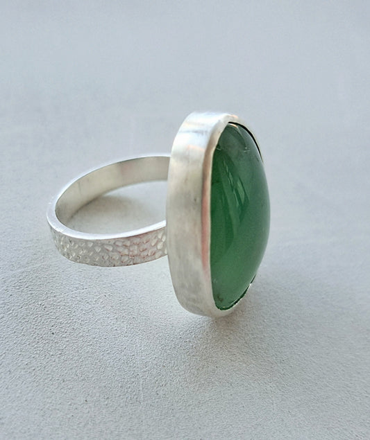 Carole Ramsden Silver - CR161 - Silver and chrysoprase freeform cabochon ring