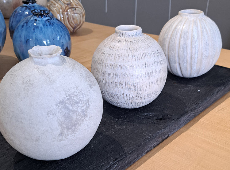 We are exited to showcase a further exhibition of Moon Jars. A wide collection of textured and glazed jars to add a unique piece of ceramics to your home interior. Whether it be the deep blues or the earthy textured glazes each piece is hand thrown and formed by hand.