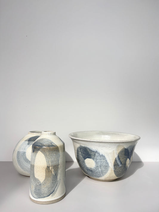 Studio 9 Ceramics is a small-batch ceramics studio based in Sedgefield, County Durham, created by artist and ceramicist Danielle Pilling. Danielle is a studio potter living and working in North East England. Her work is influenced by the natural beauty of the local coastline. Working from photographic references and sketches drawn on location, she begins to blur these recordings in her studio with her memory, imagination and abstract mark making. Danielle’s painting is integral to her ceramic practice as it provides a process of observation of both colour and texture that she aspires to capture in her ceramics thus creating a journey where the final ceramic piece is a three-dimensional response to her paintings.