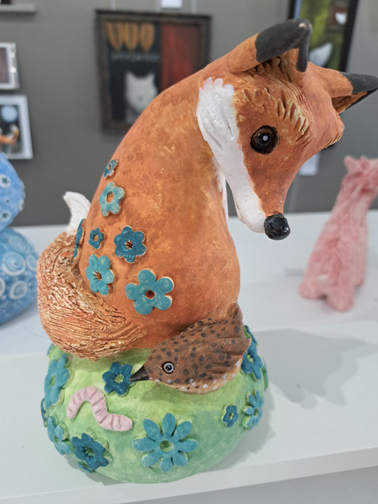 Kates studio is in York and we are delighted to be showcasing Kates Work. She works with earthenware clay to create her animals and sea creatures, using locally found driftwood to build her sculptures with.