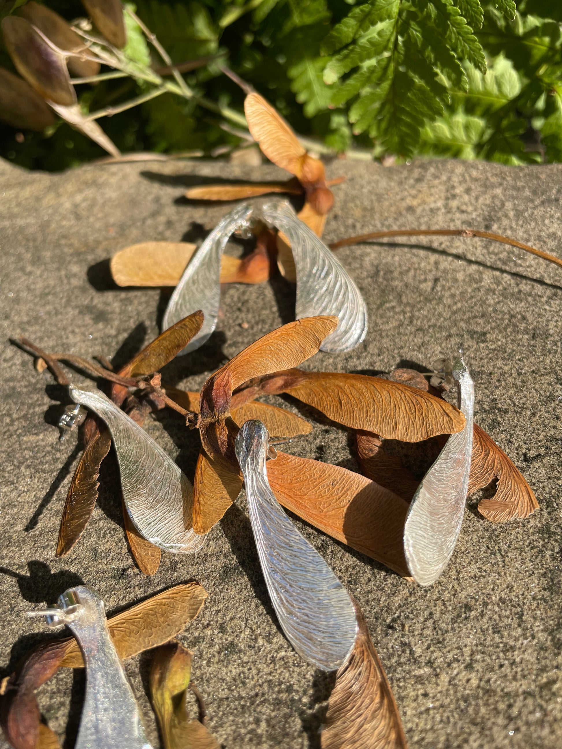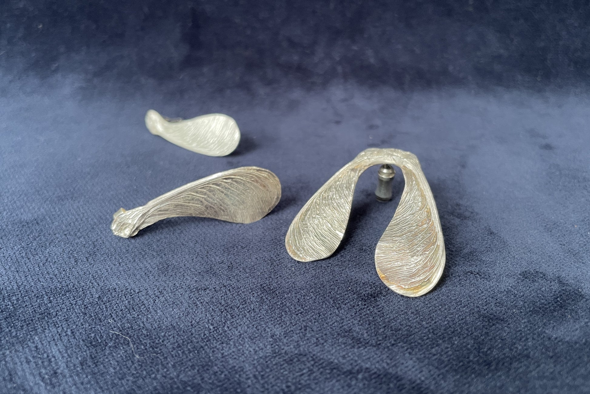 Sycamore 'helicopter', collected from the jewellers back garden & cast in sterling silver before lovingly crafted into simple drop earrings.