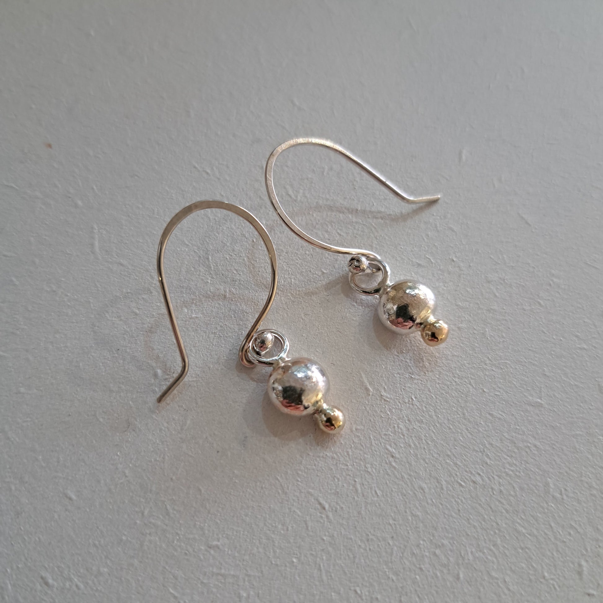 Carole Ramsden Silver - CR142 - Sterling silver and gold nugget drop earrings