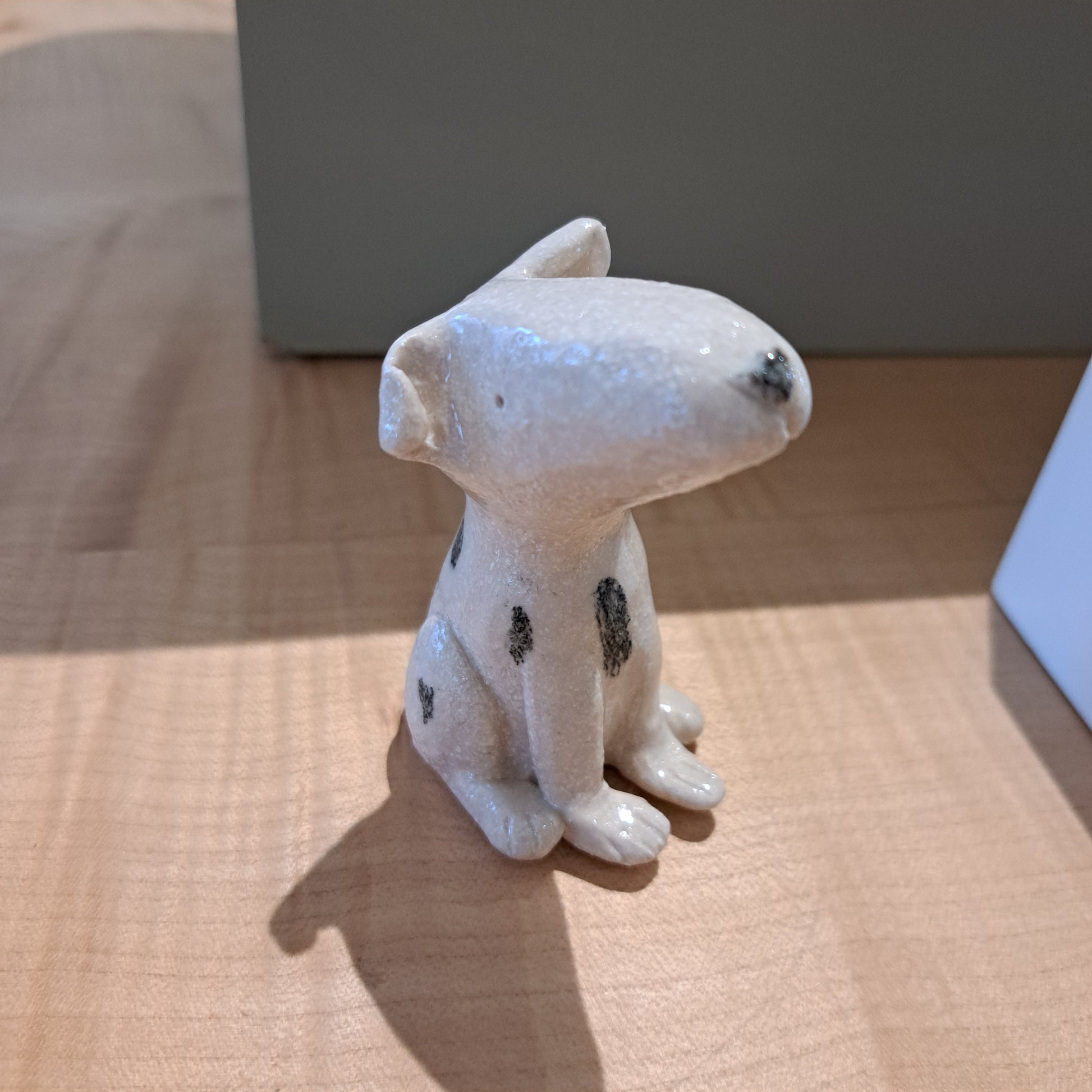 A whimsical collection of mini dog sculptures. Earthernware clay with black matte glaze details. Red underglaze.