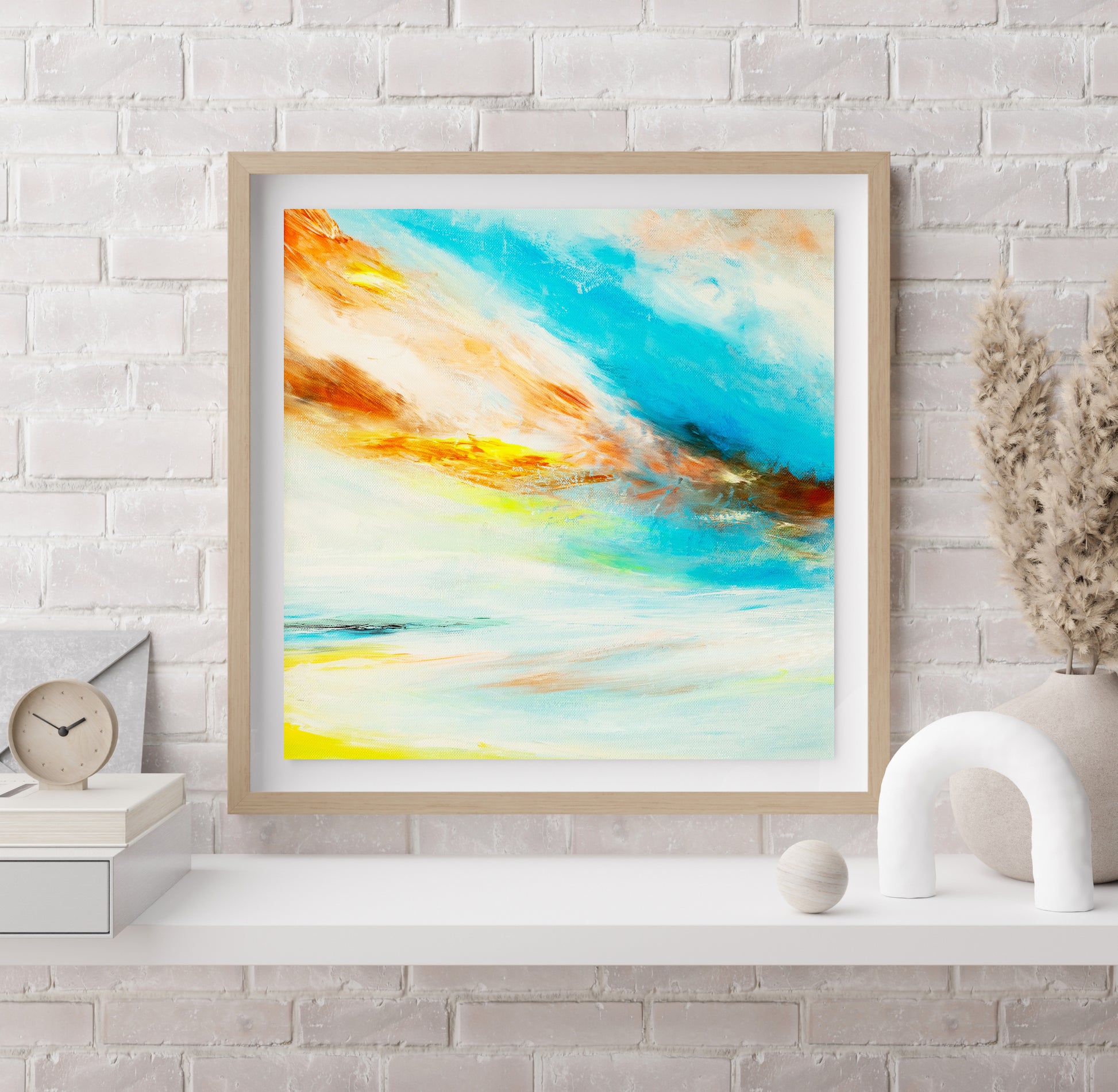 A limited edition print of Sandsend Beach, on the North Yorkshire Coast which is just South of Whitby. A piece of relaxation and tranquility and inspiration for a lot of my work. Bold sweeping skies in neons and teal blues a great piece for a coastal home or feature wall.