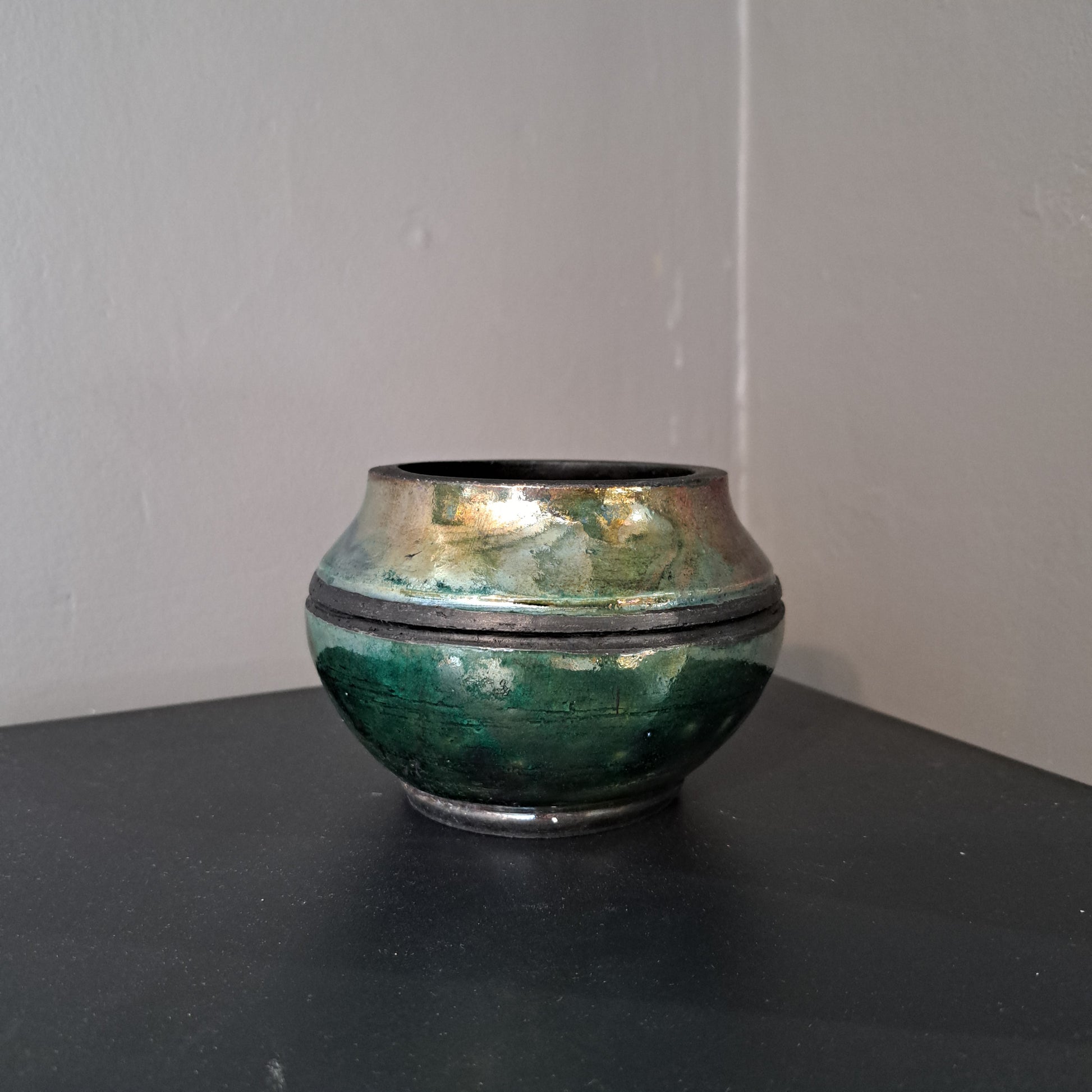 Laura Lee Ceramics - Medium green metallic glaze Raku Vase No 9
