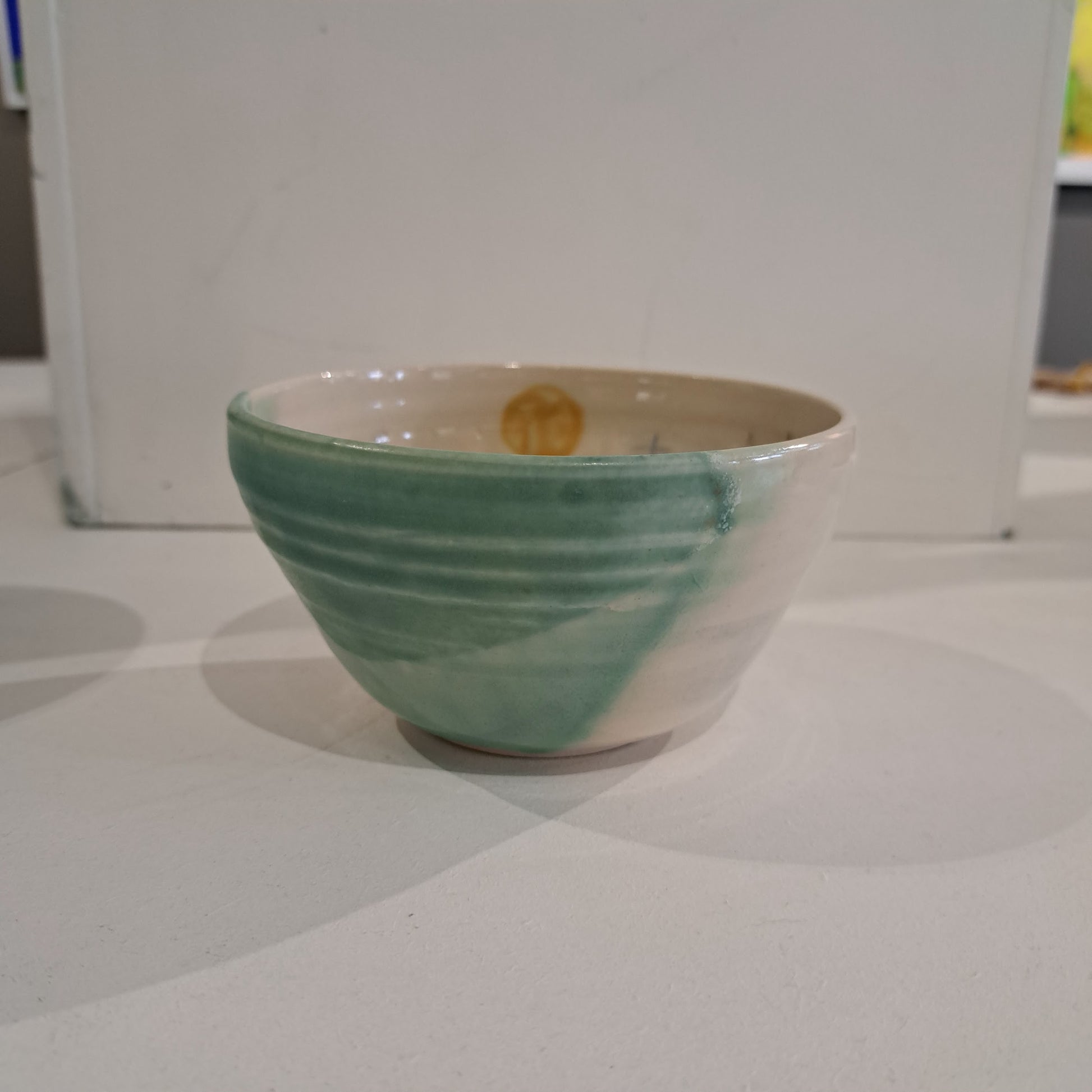 Hand thrown by Lorna in her Yorkshire garden studio, these white stoneware bowls have been made using as few resources as possible. Decorated with a mix of green and turquoise glazes, each has a simple undulating design that reflects the pattern of the ocean and the sea shore. Part of the Leaping Hare collection of pieces, all unique.