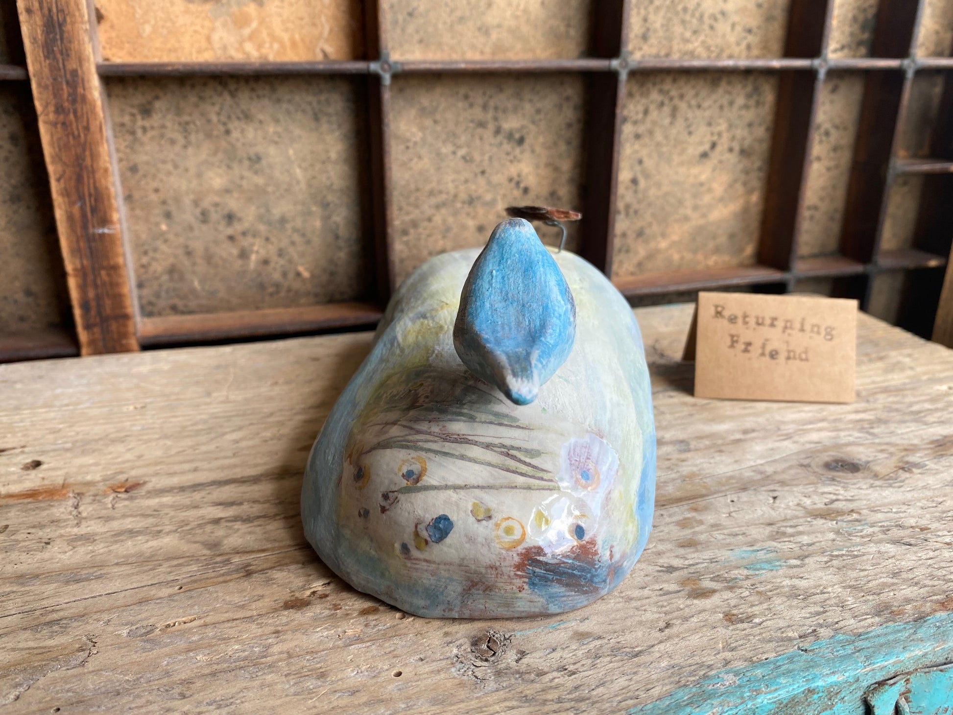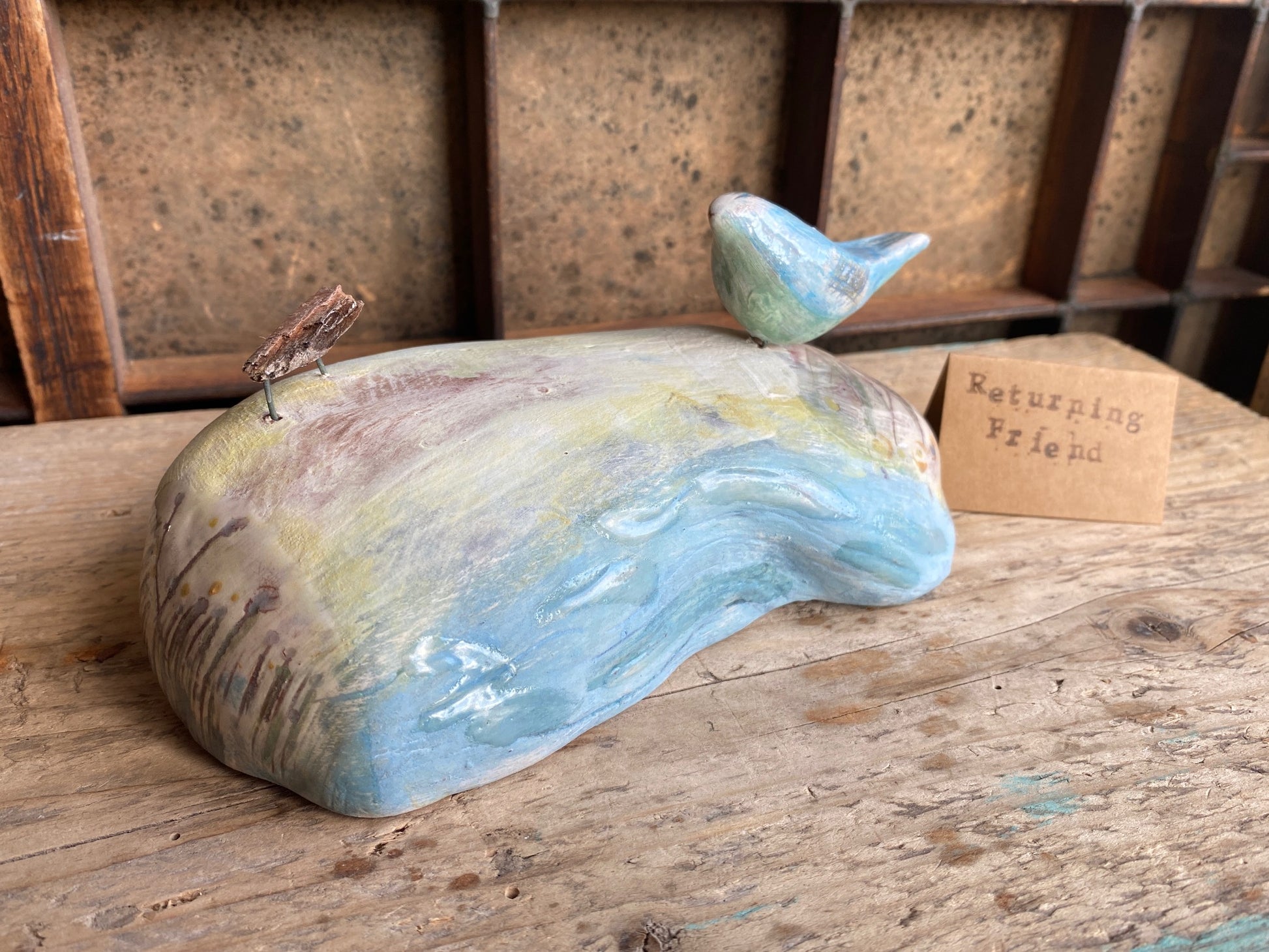 Transport yourself to cherished moments with our terracotta sculpture, a heartfelt tribute to a favorite bench shared with my Mum during our walks. Inspired by the comforting presence of familiar surroundings, this piece recalls the gentle camaraderie of watching the same bird friends visit time and again. Crafted with tender reminiscence, it captures the essence of those tranquil encounters, offering a nostalgic embrace for your home. Let this sculpture serve as a reminder of the enduring bonds forged in the simple joys of companionship and nature's beauty