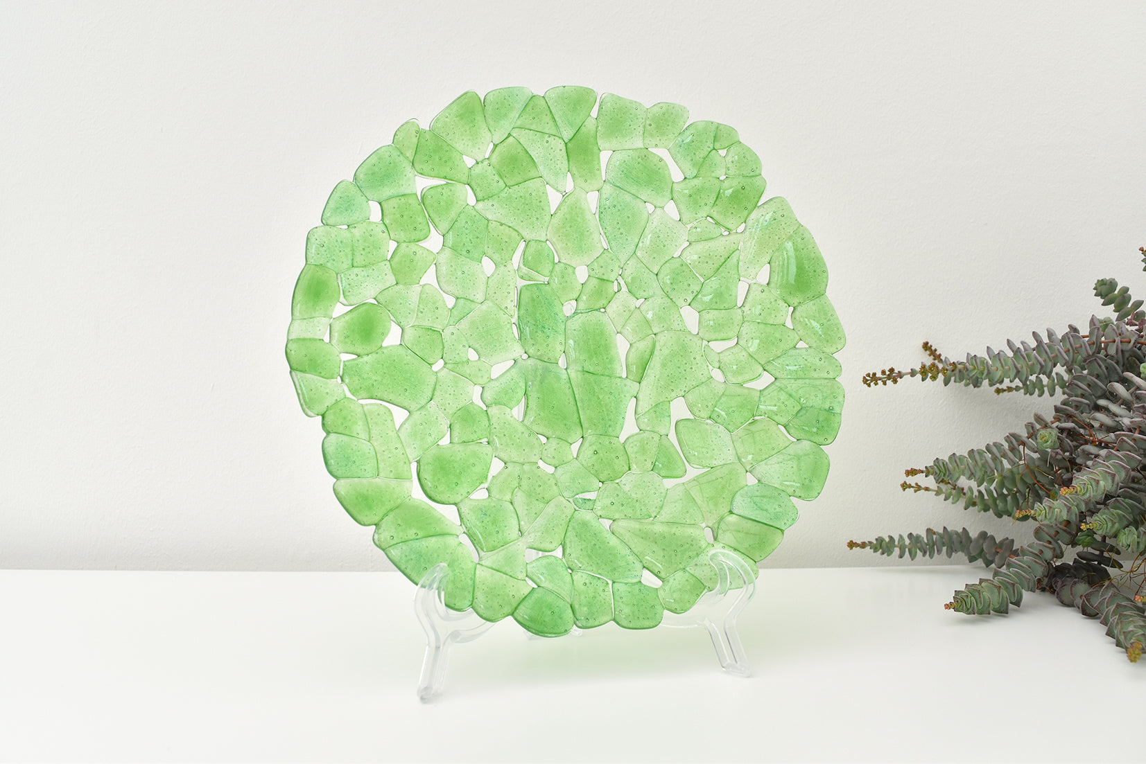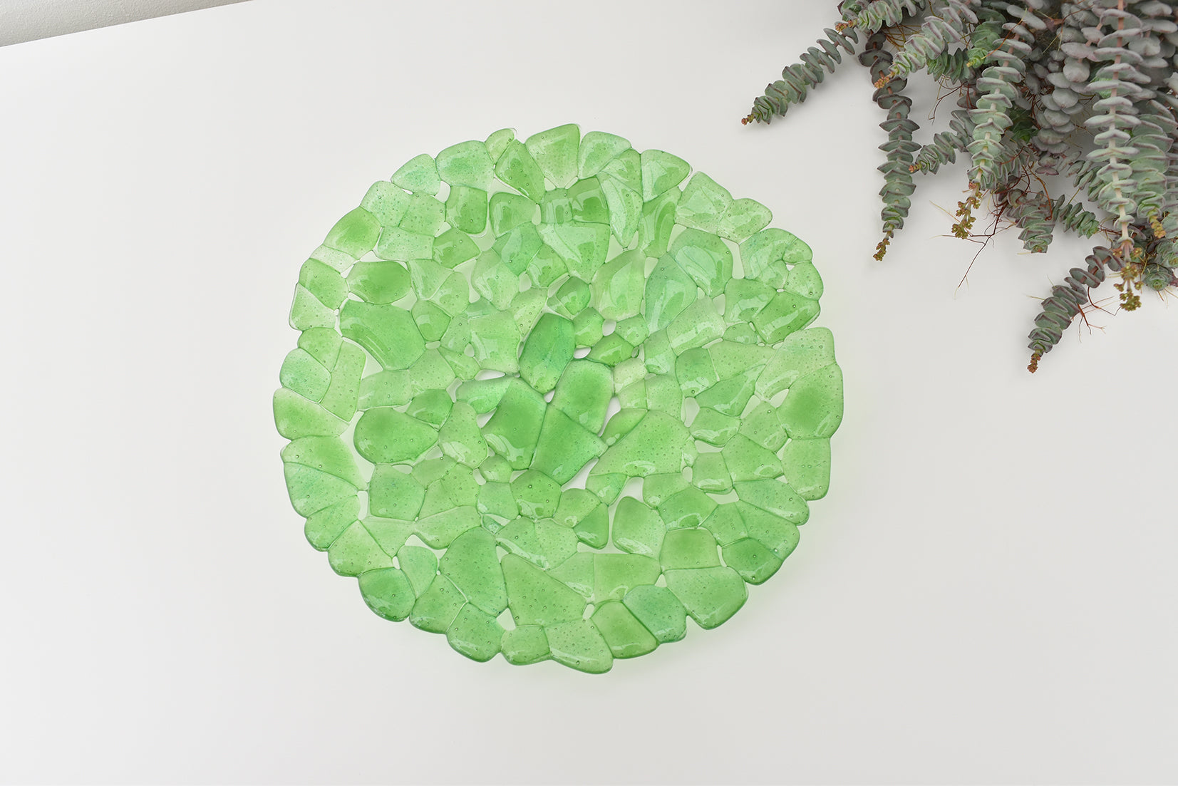 Tanja Entwistle Glass - BL-020 Melting Chrome Green Dish